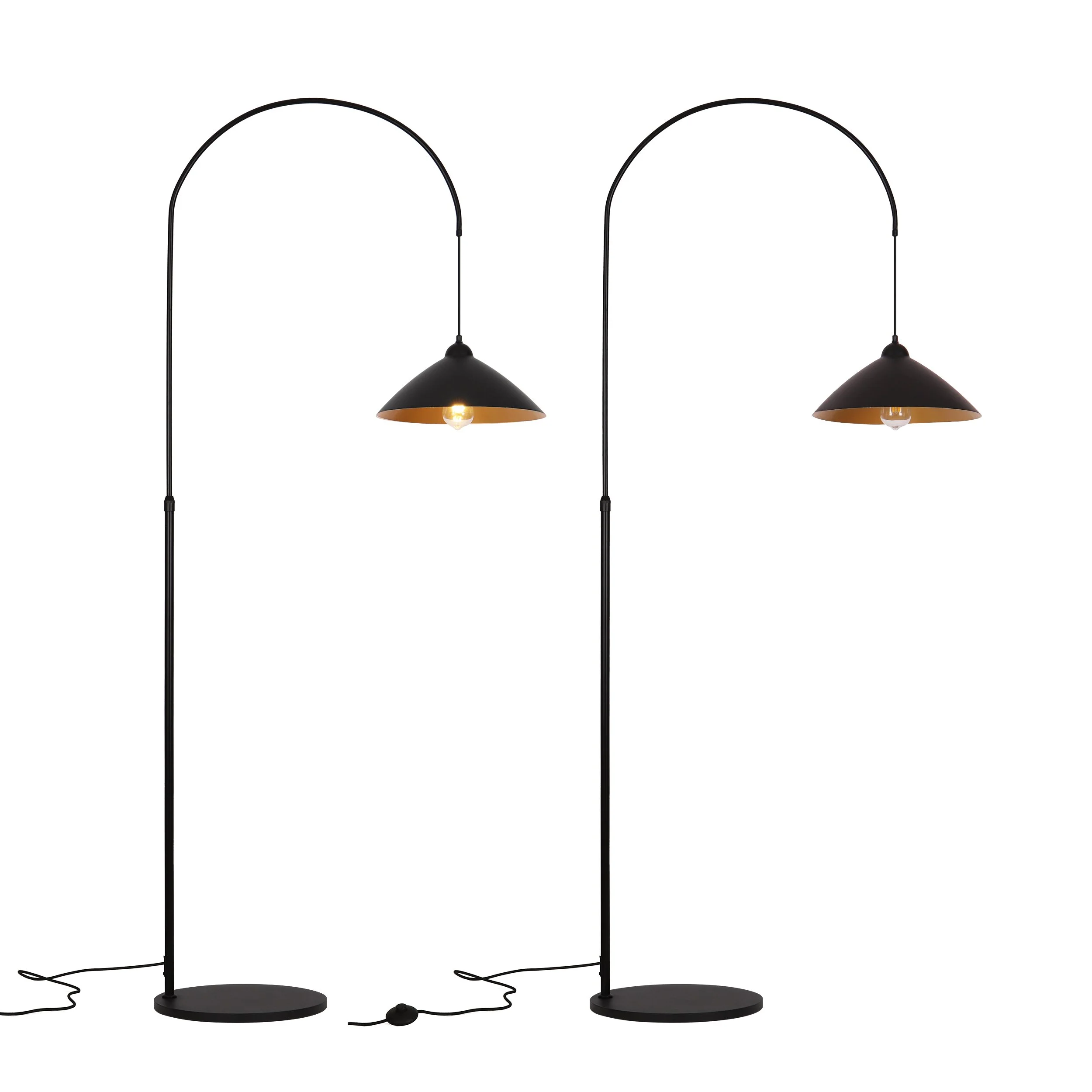 This iron floor lamp features a modern - minimalist style with an arched silhouette and a black finish. Its sleek, curved arm and cone - shaped shade exude elegance. Advantages include stable iron construction, adjustable height, and soft, ambient lighting. Ideal for living rooms, bedrooms, or reading nooks, adding a touch of sophistication while creating a cozy atmosphere.