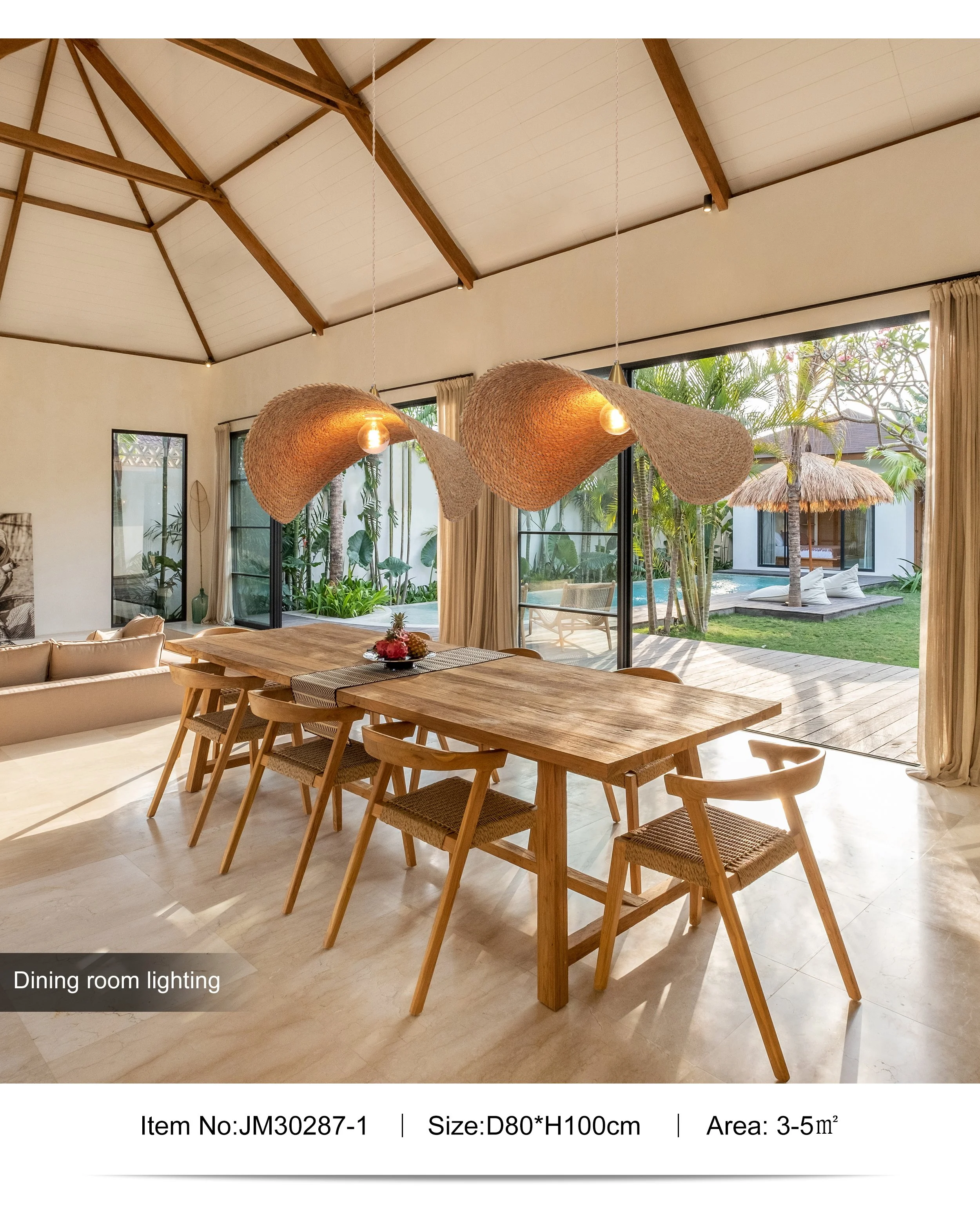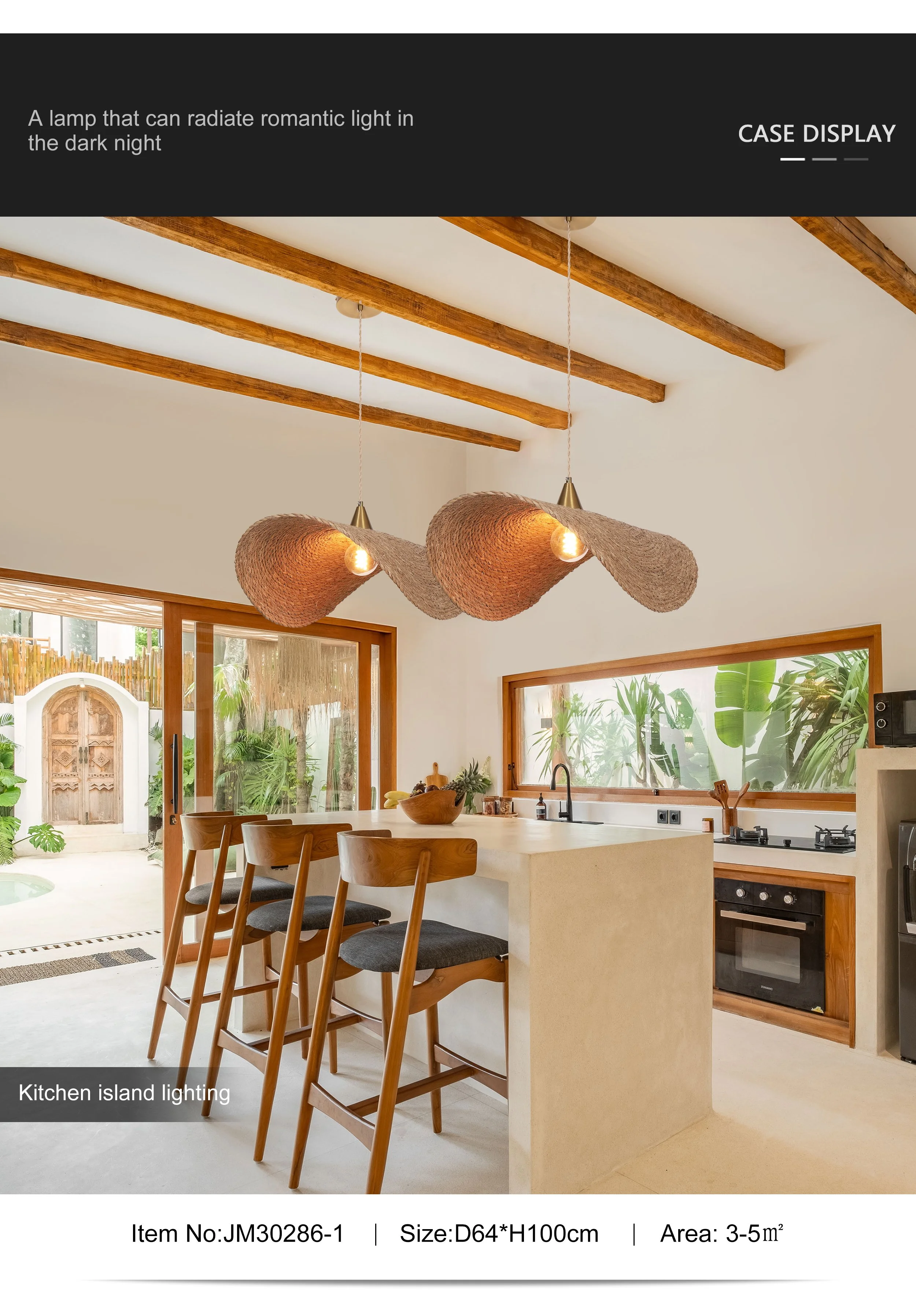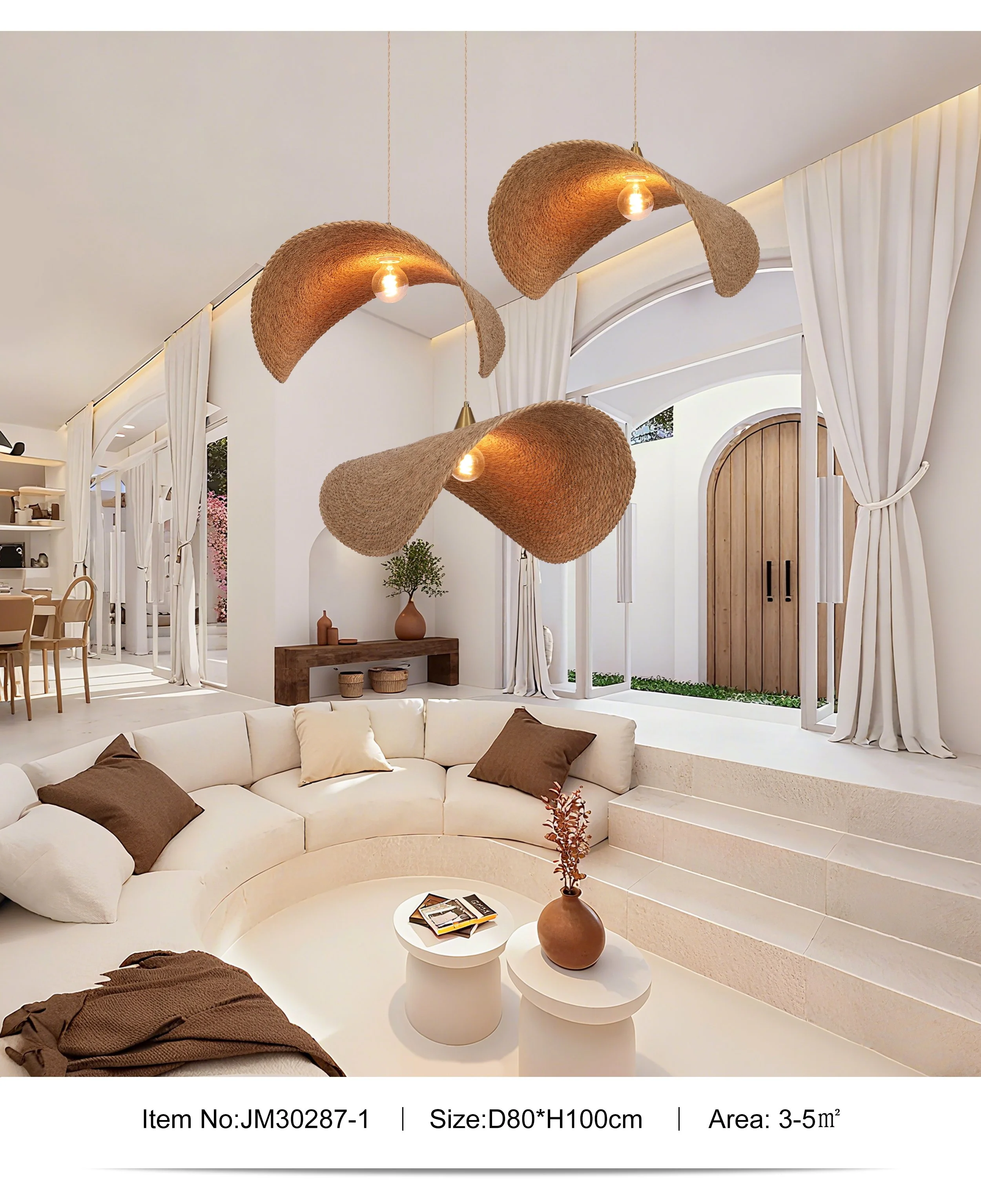 This seagrass chandelier has a unique, artistic shape. Made of natural seagrass, it's eco-friendly and textured. The warm light it emits creates a cozy, nature-inspired atmosphere. Perfect for bohemian or coastal-style spaces like living rooms or dining areas, it adds a touch of rustic elegance.
